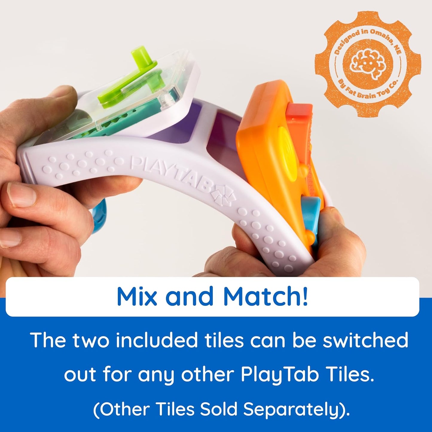 A smaller edition of the popular PlayTab activity board! Clip ring easily attaches to car seats, strollers, diaper bags, or anywhere The two included sensory tiles can be popped in and out of the flexible, durable case Tiles can be switched out for any other PlayTab tiles (sold separately) Ages 12 mo.+