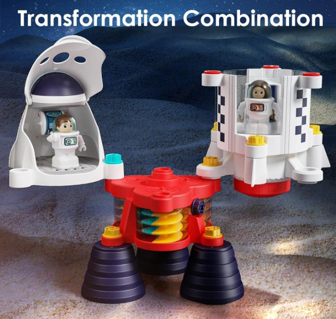 The Interstellar Assembly Rocket Toy brings the wonders of space to the playroom. With its easy-to-follow instructions, children can assemble the rocket themselves, promoting critical thinking, problem-solving skills, and hand-eye coordination. Designed to replicate a real rocket, this toy features authentic details such as boosters, detachable stages, a command module, as well as interactive lights and sounds. Ages 3 years and up.